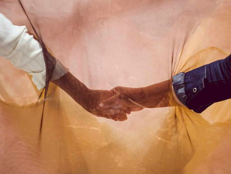 Esta instalación surge de mi investigación en torno a la idea de “piel” entendida como límite conector y protector que condiciona y regula la conexión con el entorno. Me interesa la relación directa que existe entre los tejidos biológicos y culturales. Ambos caracterizados por una configuración dialógica que se da entre el adentro y el afuera, entre lo biológico y lo cultural, entre lo privado y lo público. Si bien la piel se presenta como superficie igualadora -uniforme humano-; a su vez, es un contenedor personal. Expresa en su exterior la naturaleza de ese contenido recreado de manera única y constante de acuerdo a sus infinitas formas de vincular. Esta exploración me ha llevado a indagar sobre la memoria háptica (táctil) que genera cada sujeto, y por lo tanto, a ahondar sobre el “sentido del tacto”. Entendido, a este último, no solo como la sensación estimulada desde lo externo - cuando nuestra piel toma contacto con algo-, sino también la sensación interior de nuestro cuerpo ligado a lo afectivo. Tangible en expresiones de uso cotidiano como “siento mariposas en la panza”, “tengo un nudo en la garganta” o “se me estruja el corazón”. La instancia cumbre del efecto artístico es la sensación de “ser tocado”, “ser afectado”, produciendo un cambio de estado, dejando una huella o marca, que inicie movimiento, que perturbe, que conmueva. Al abordar este trabajo desde la experiencia corporal me surge la necesidad de pensar y expandir mi interés en la participación del espectador, entendiendo a éste como co-creador que desde su particularidad en distinta medida y manera contribuye al sentido de la obra. Nos convertimos en un registro del intercambio porque la piel afecta y es afectada.